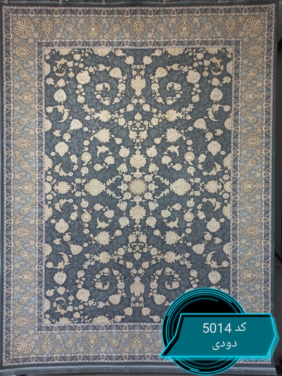 فرش ماشینی کاشان 700 شانه کد5014زمینه دودی