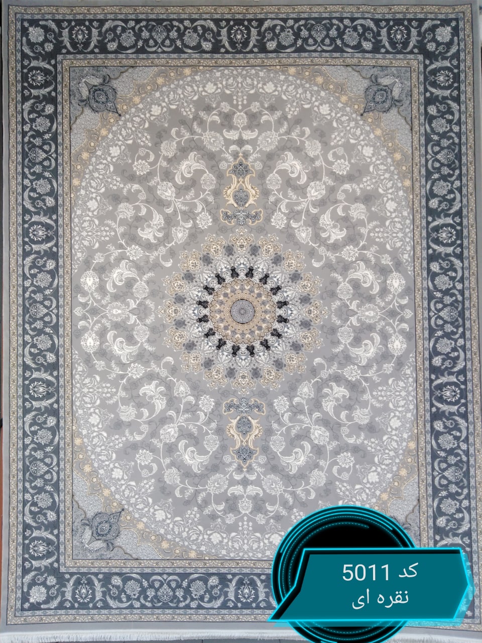 فرش ماشینی کاشان 700 شانه کد5011 زمینه نقره ای