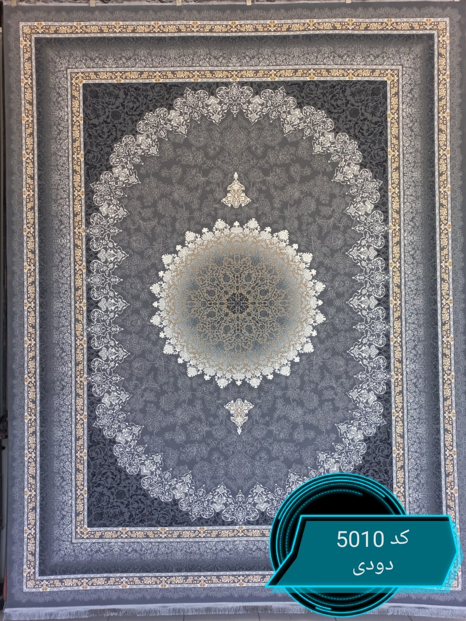 فرش ماشینی کاشان 700 شانه کد5010زمینه دودی