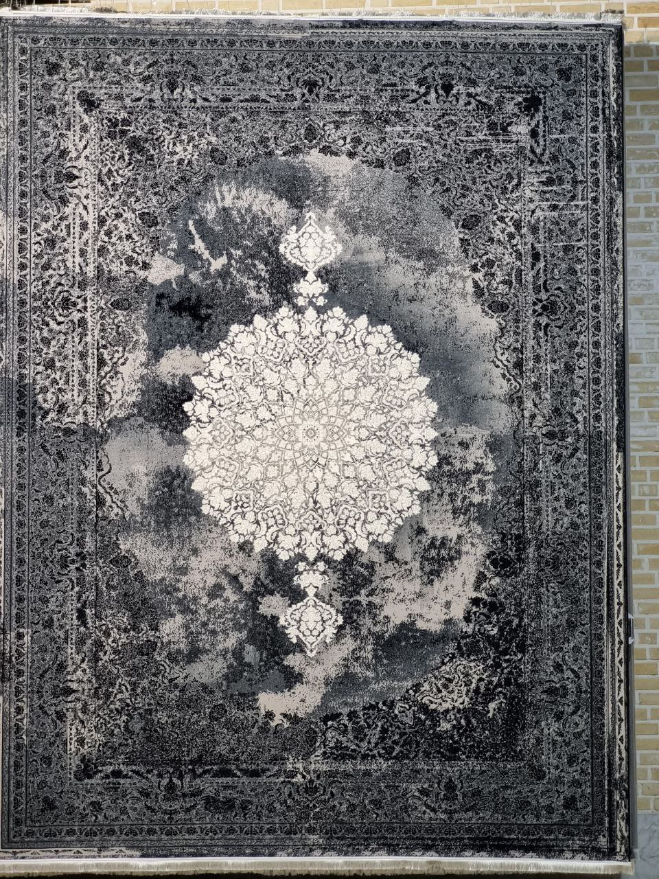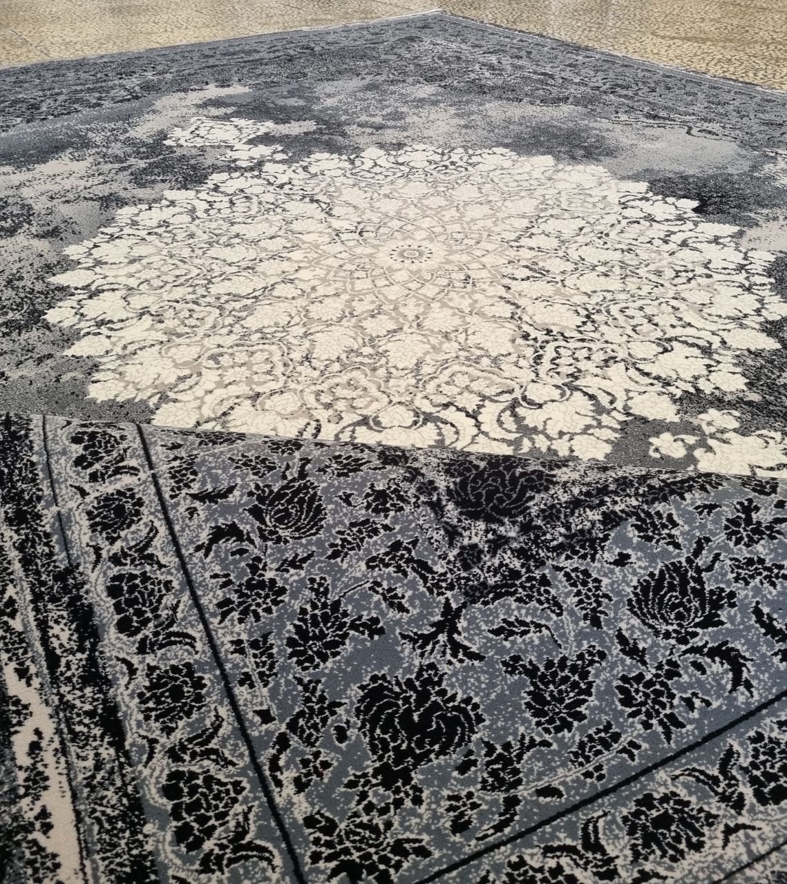 فرش ماشینی کاشان 700 شانه نقشه میراژ زمینه دودی
