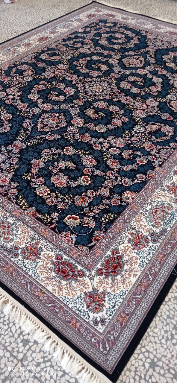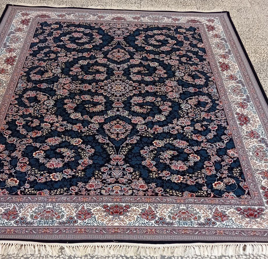 فرش ماشینی کاشان 700 شانه نقشه شاهان زمینه سرمه ای