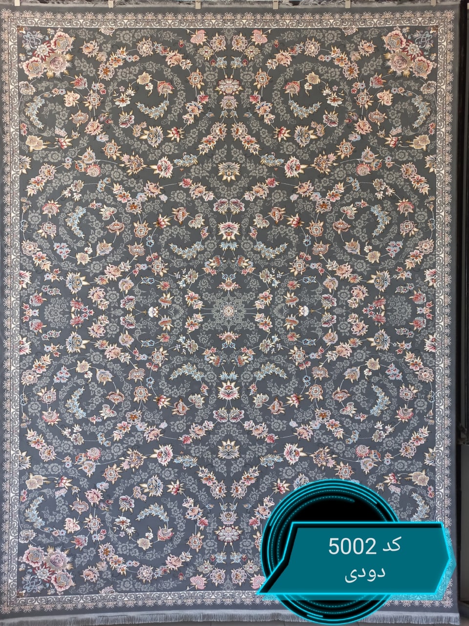 فرش ماشینی کاشان 700 شانه کد5002 زمینه دودی