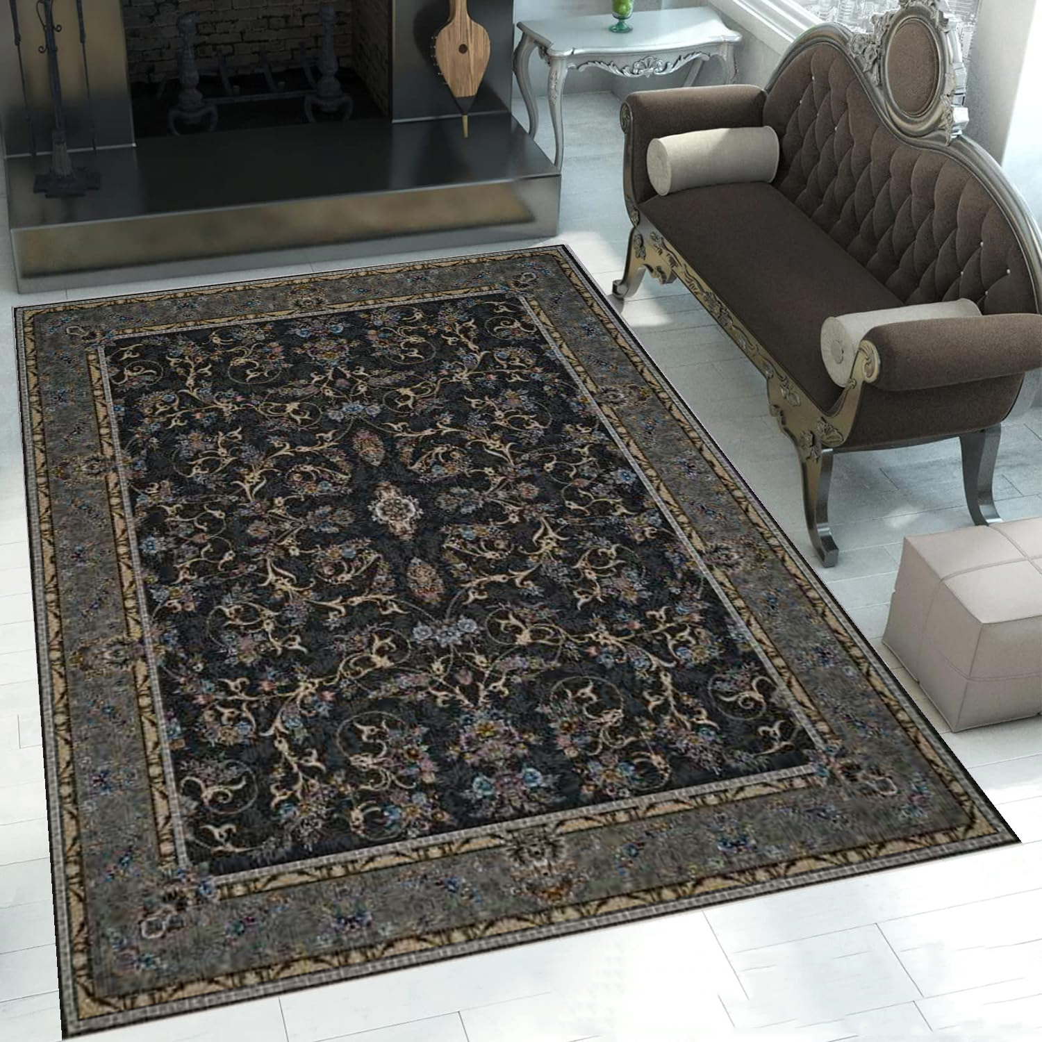 فرش ماشینی کاشان 700 شانه کد7019 زمینه دودی
