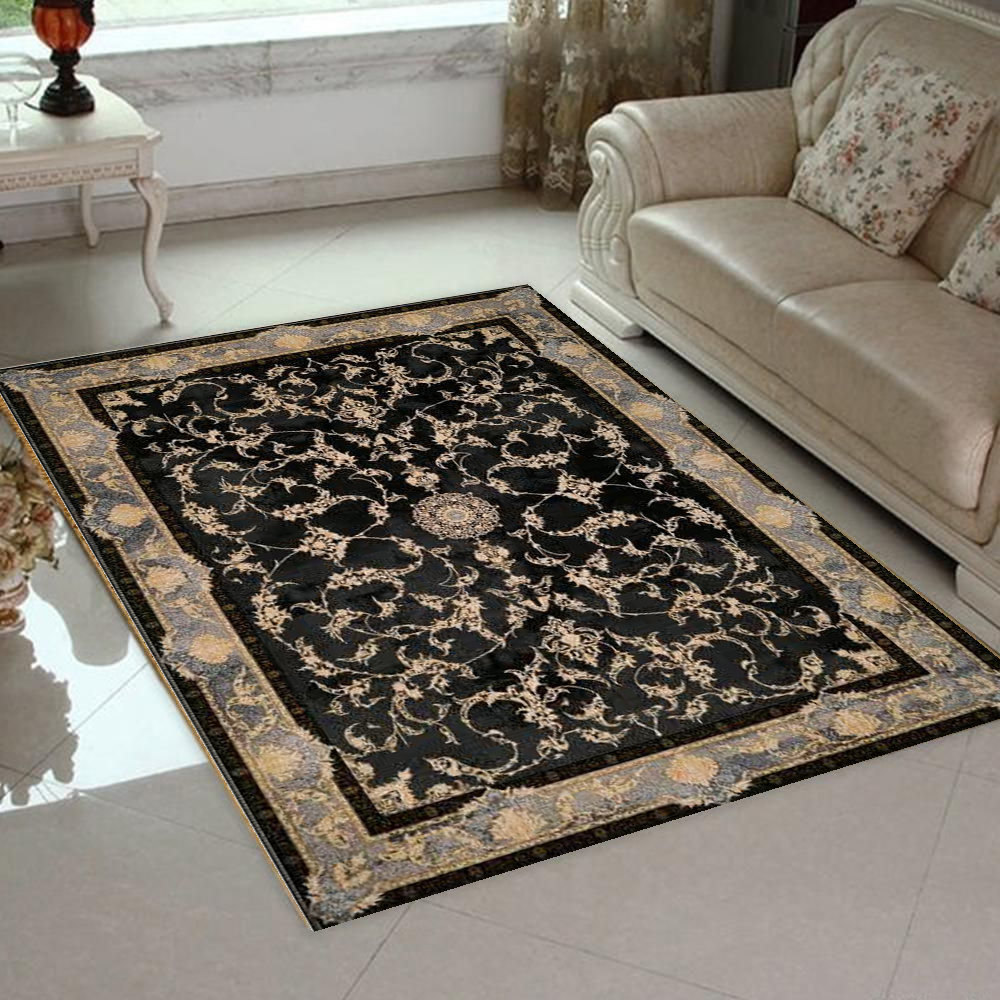 فرش ماشینی کاشان 700 شانه کد7022 زمینه ذغالی