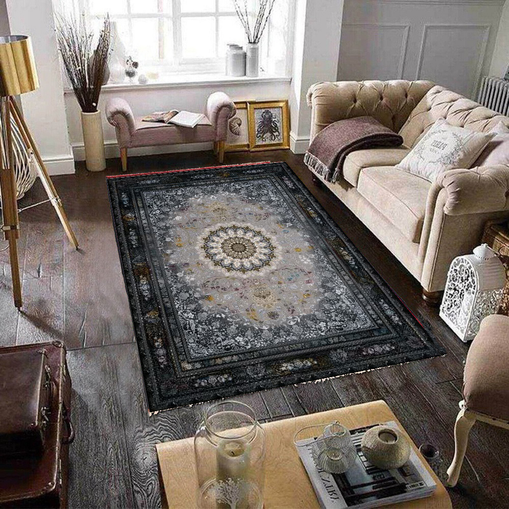 فرش ماشینی کاشان 700 شانه کد7023 زمینه نقره ای