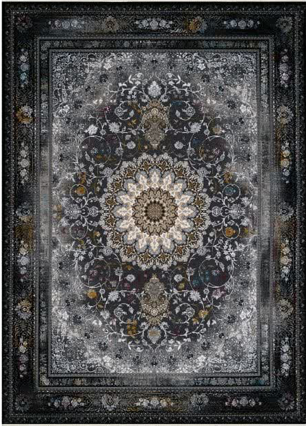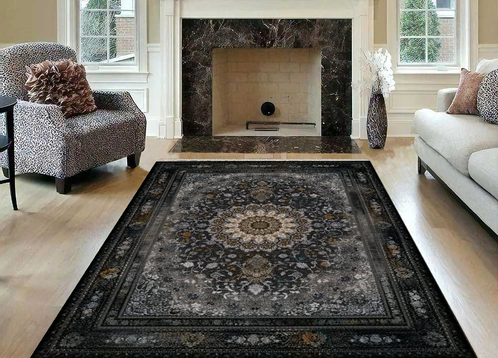 فرش ماشینی کاشان 700 شانه کد 7023 زمینه ذغالی