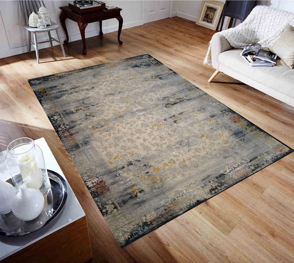 فرش ماشینی کاشان 700 شانه کد7024 زمینه بژ وینتیج