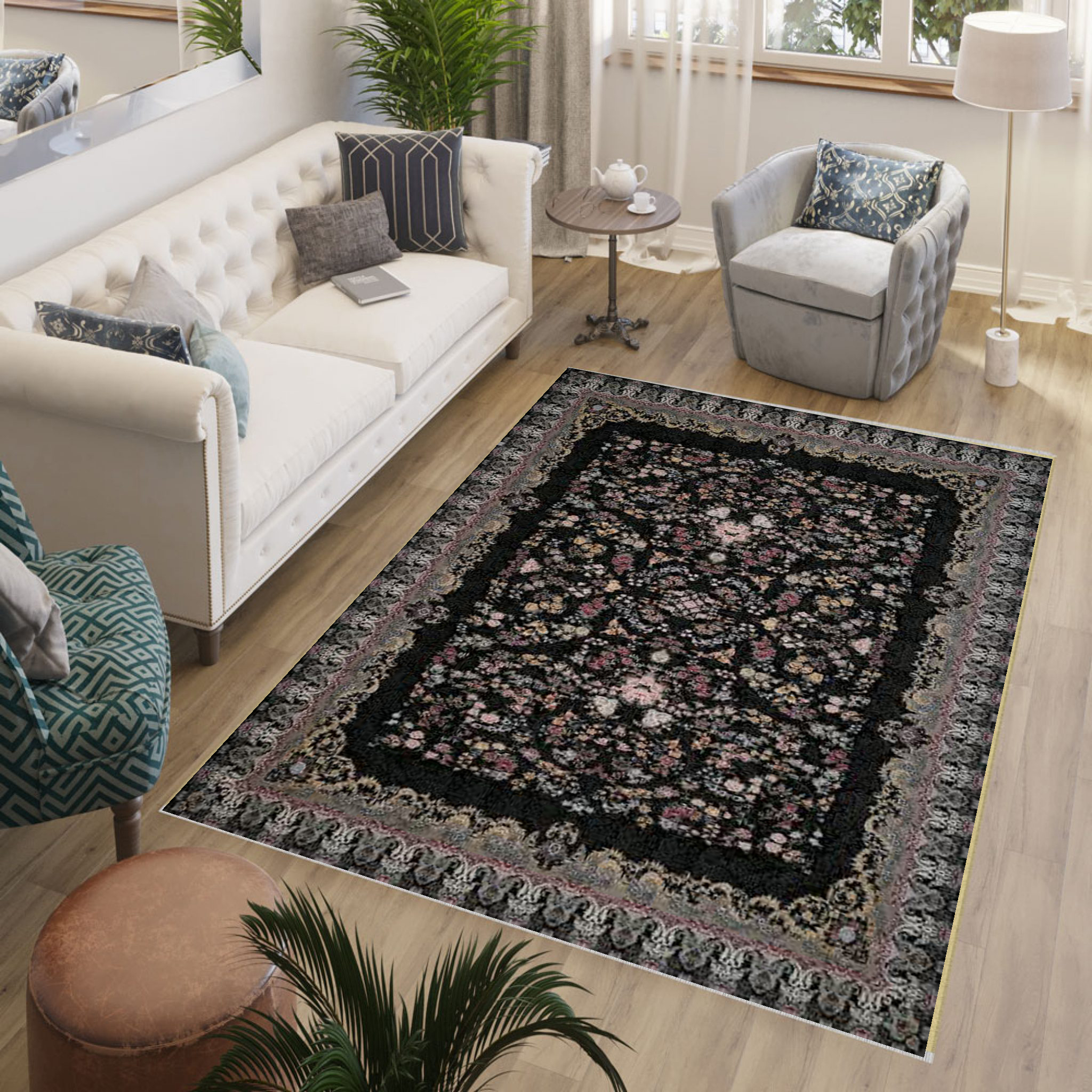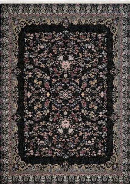 فرش ماشینی کاشان 700 شانه کد 7025زمینه ذغالی