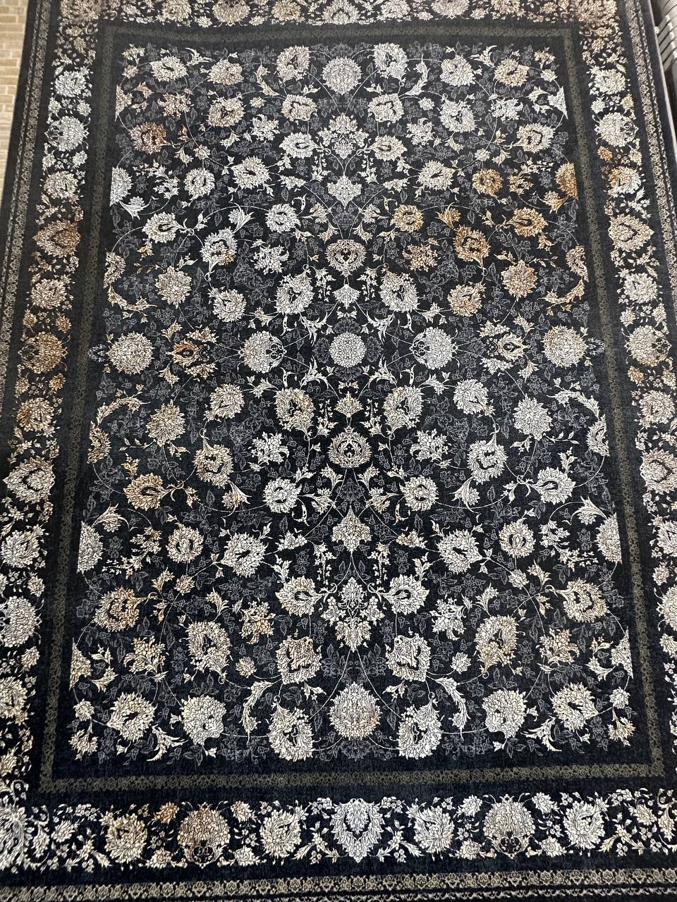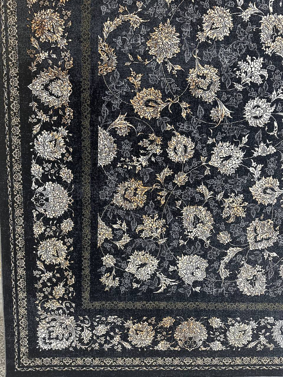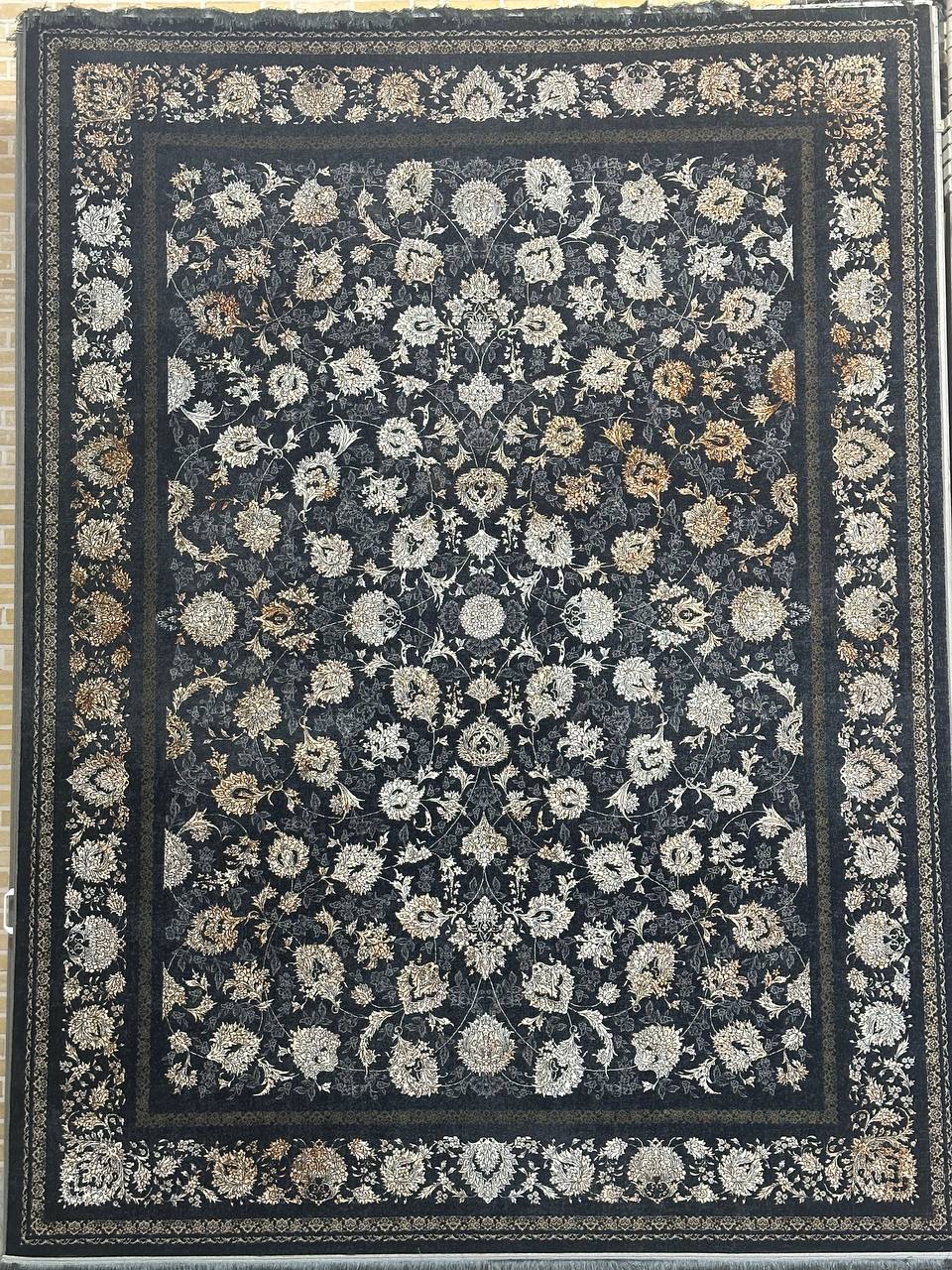 فرش ماشینی کاشان 700 شانه نقشه آرمان زمینه ی سرمه ای