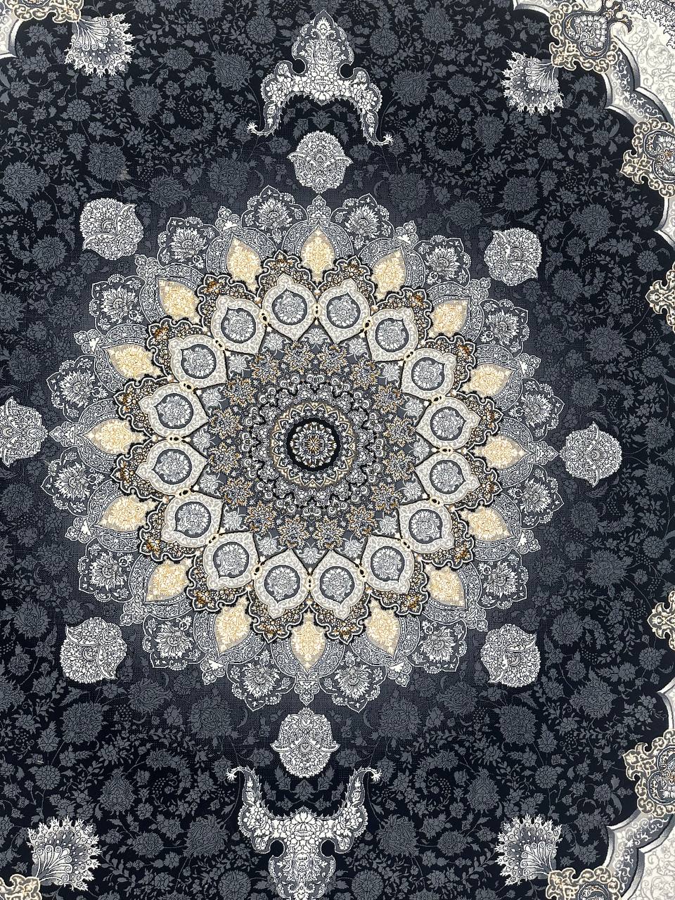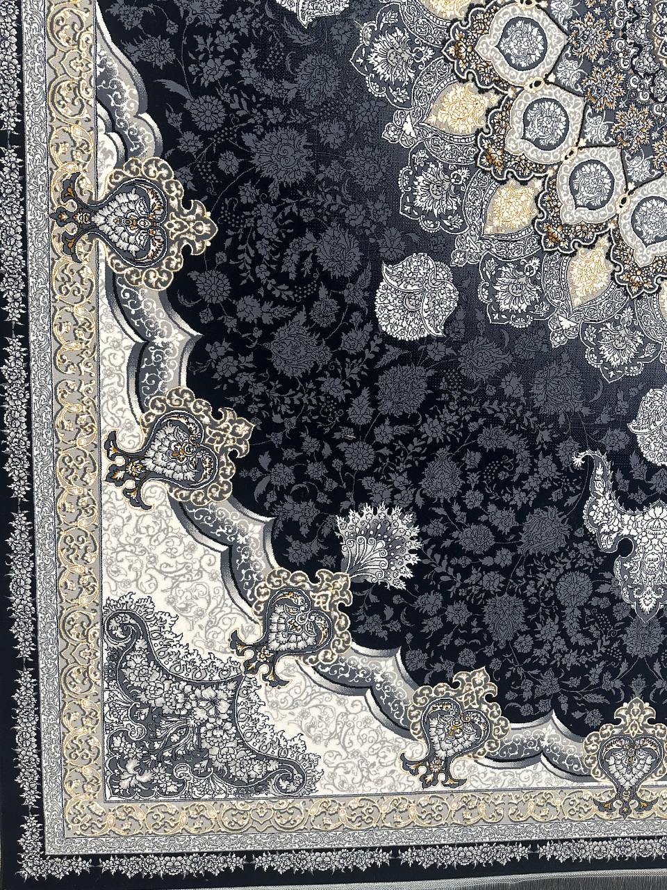 فرش ماشینی کاشان 700 شانه نقشه سلطان زمینه سرمه ای