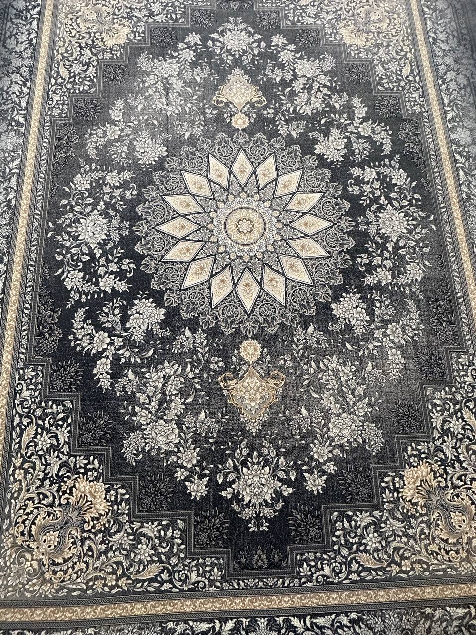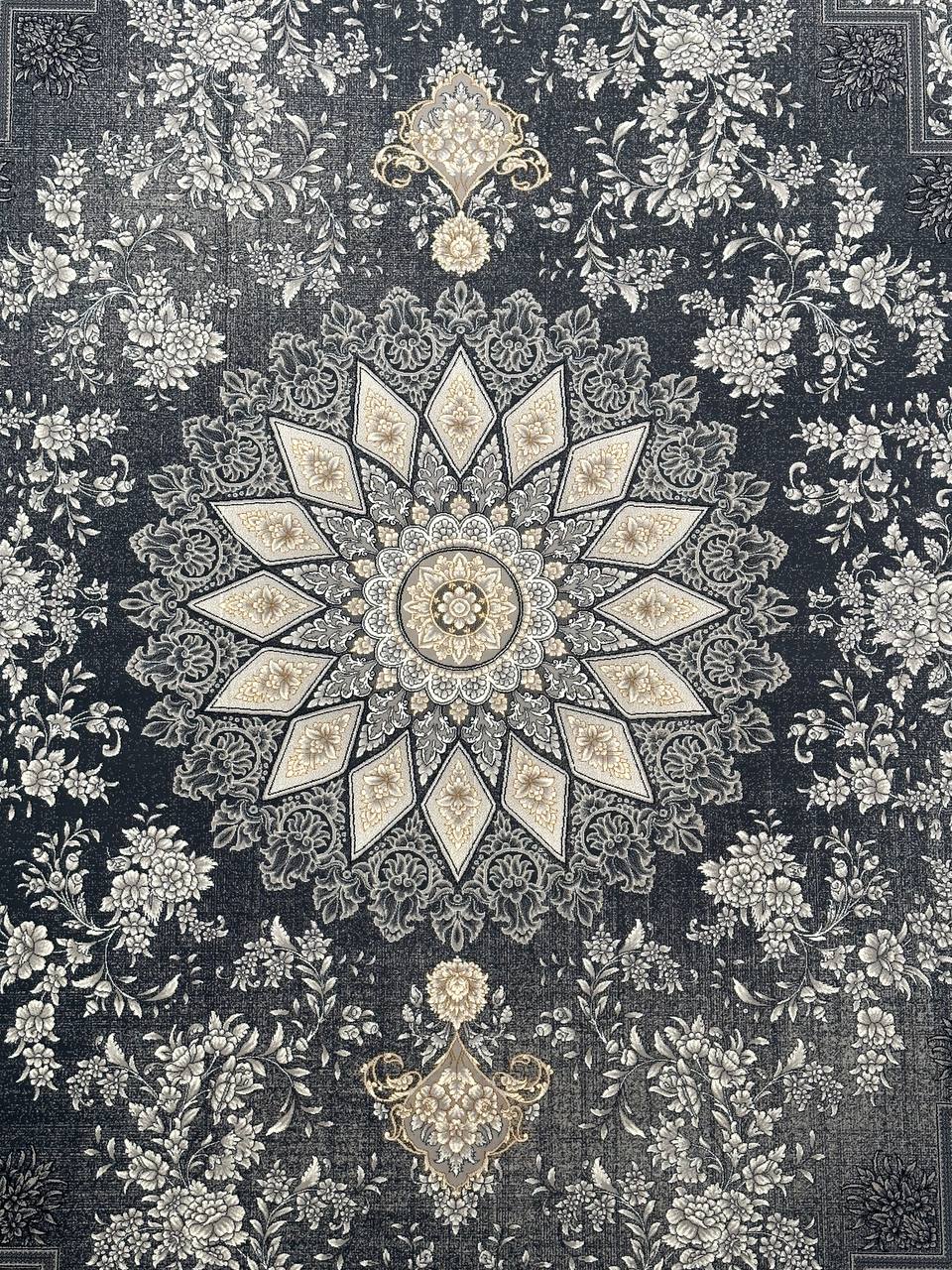 فرش ماشینی کاشان 700 شانه نقشه ها اطلس وینتیج زمینه دودی