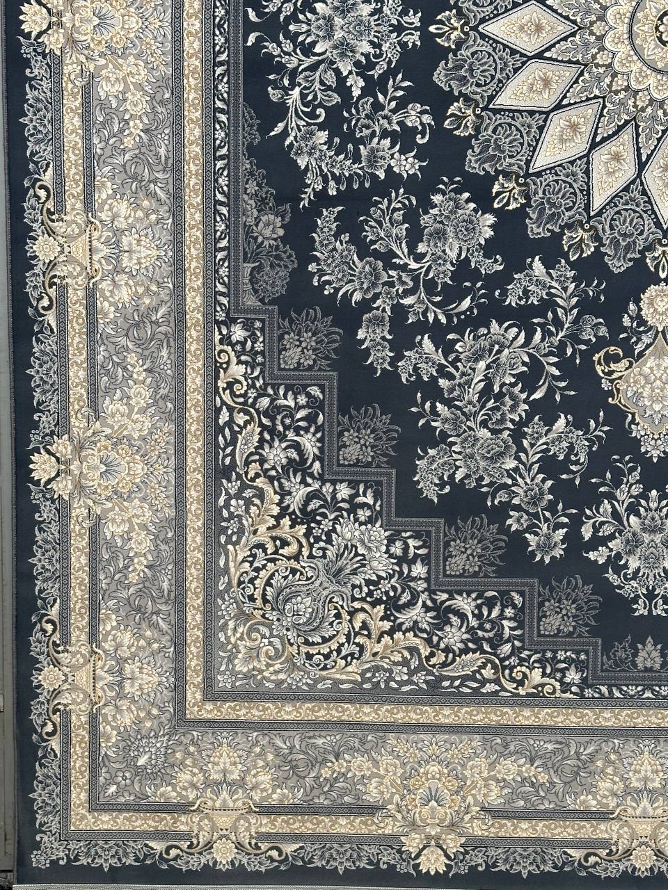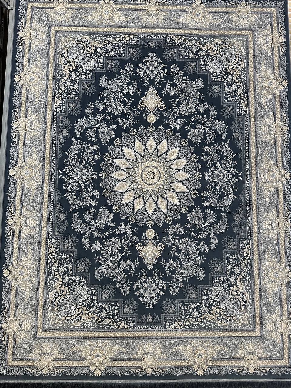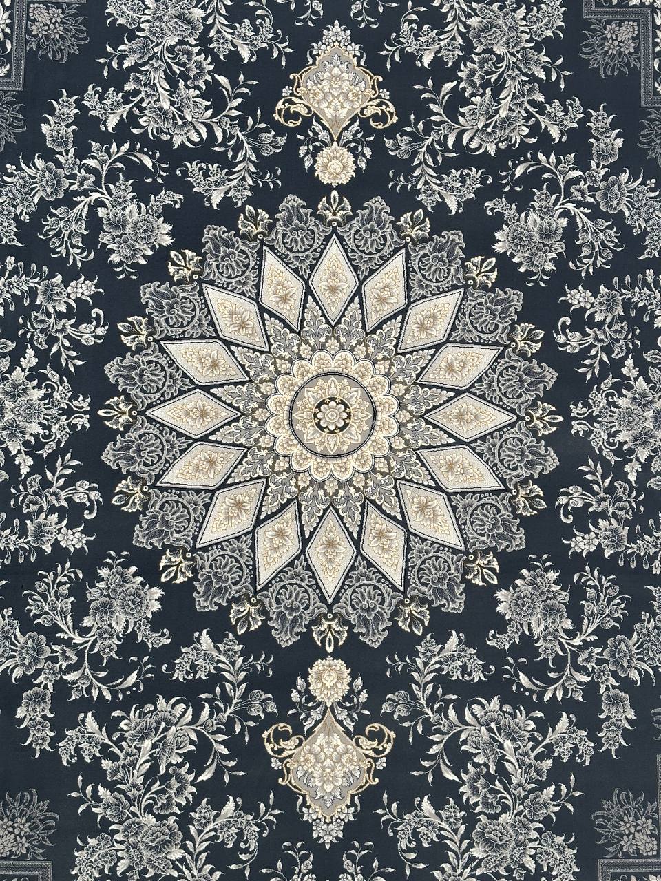 فرش ماشینی کاشان 700 شانه نقشه اطلس زمینه دودی
