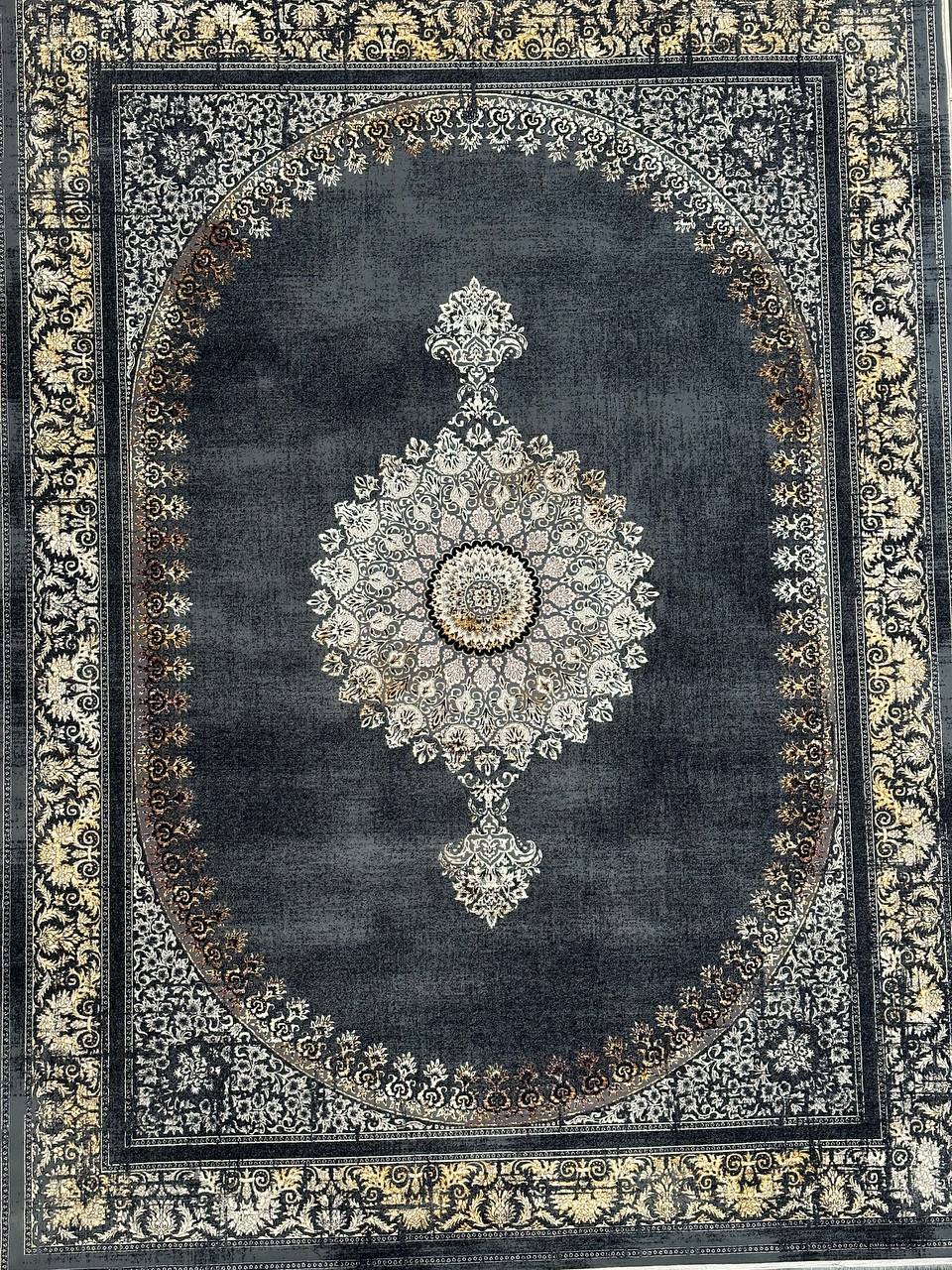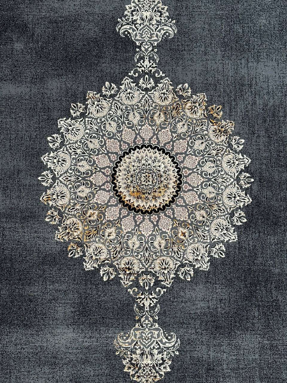 فرش ماشینی کاشان 700 شانه نقشه محراب زمینه دودی