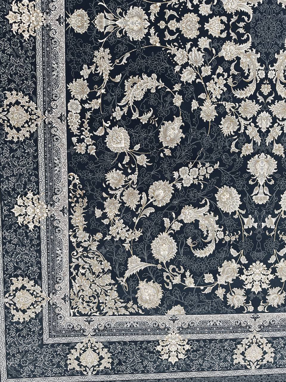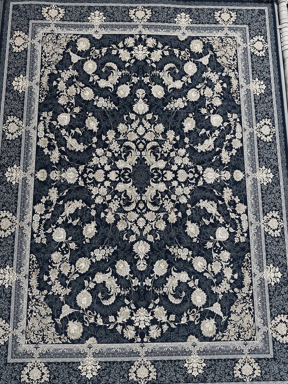فرش ماشینی کاشان 700 شانه نقشه نو بهارزمینه دودی