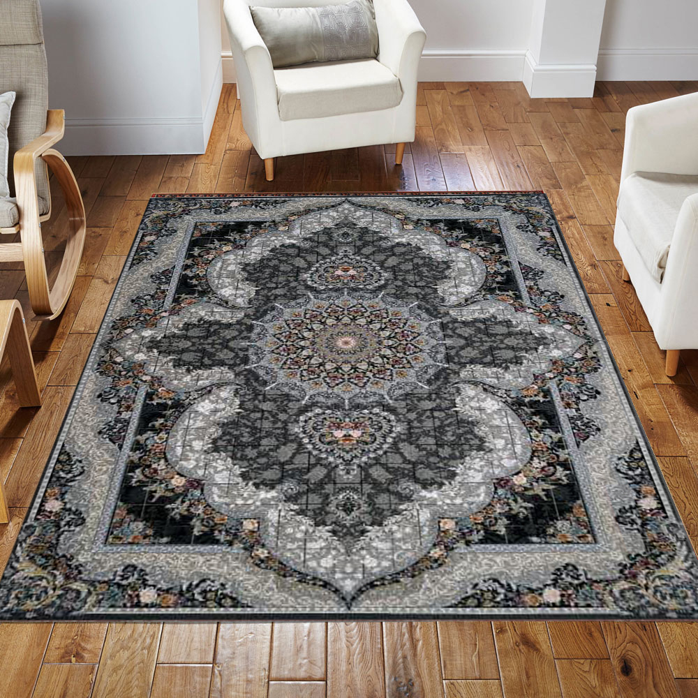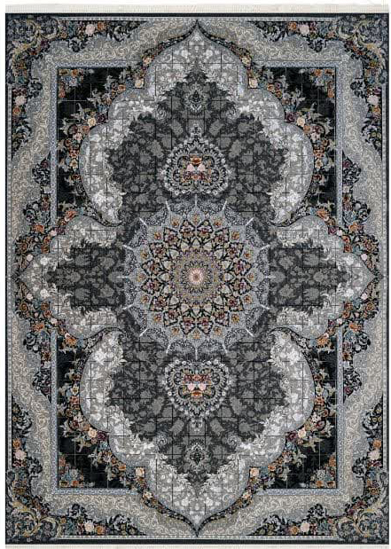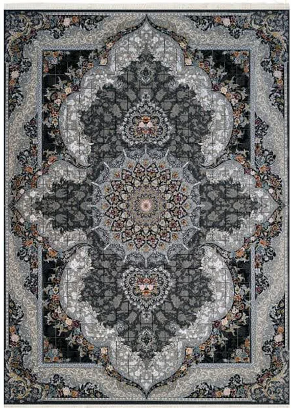 فرش ماشینی کاشان 700 شانه کد7030 زمینه دودی