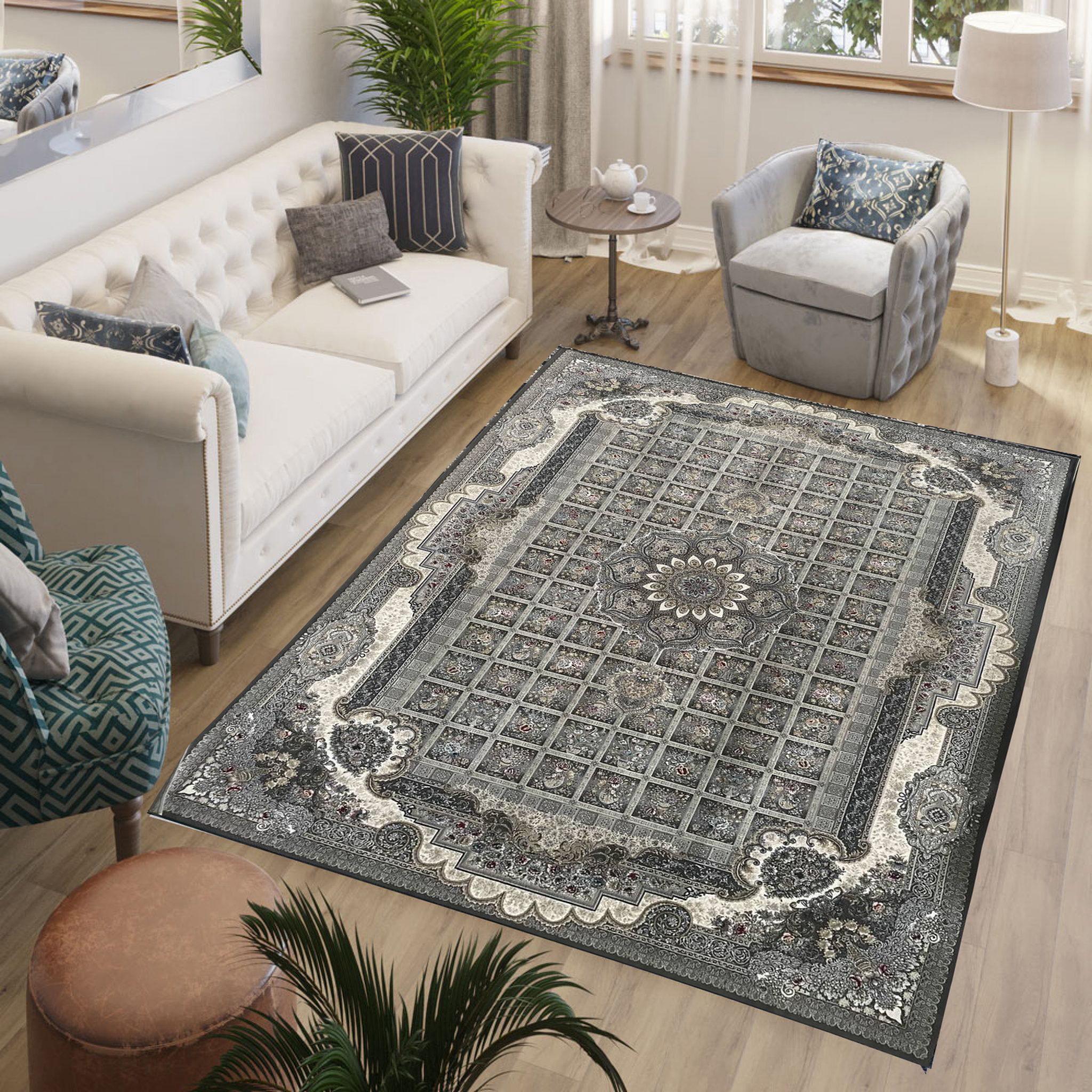 فرش ماشینی کاشان 700 شانه کد7039 زمینه دودی