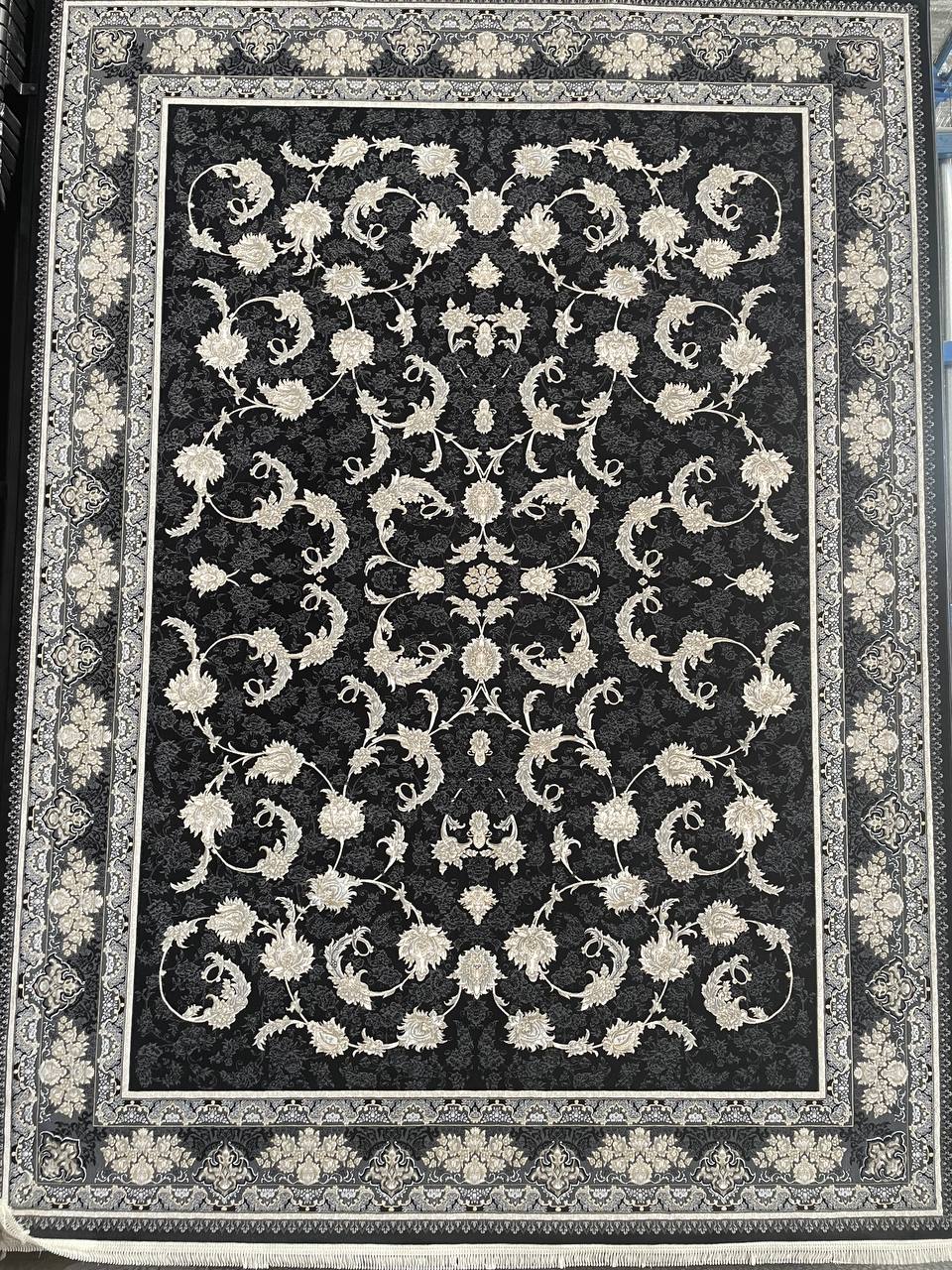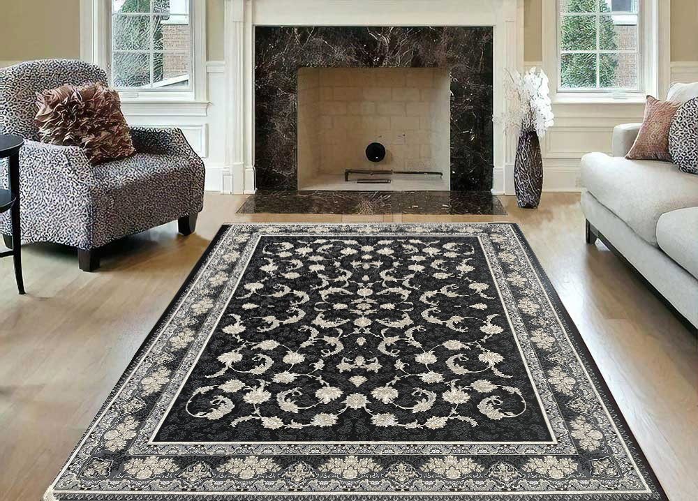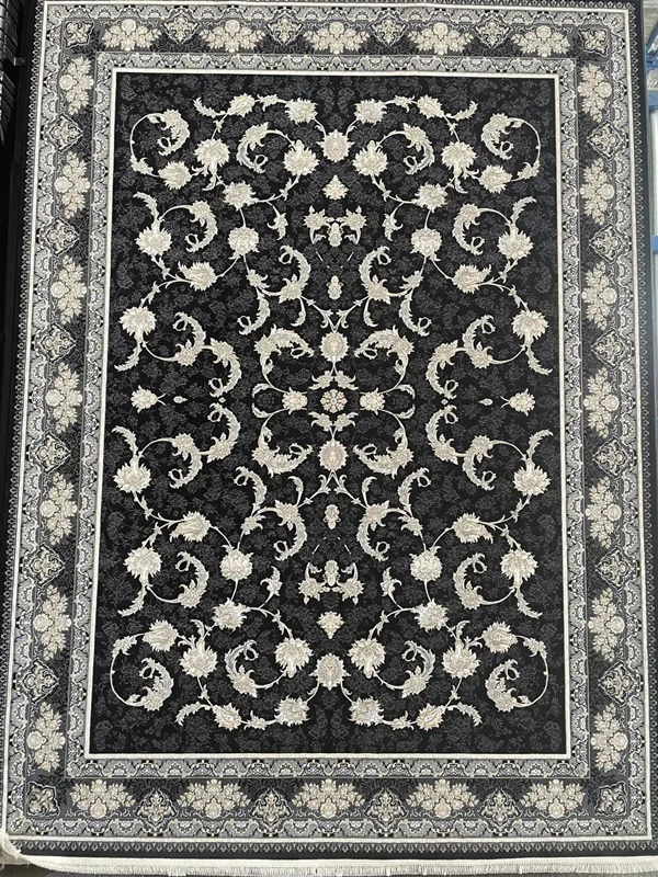 فرش ماشینی کاشان 700 شانه کد7027 زمینه ذغالی