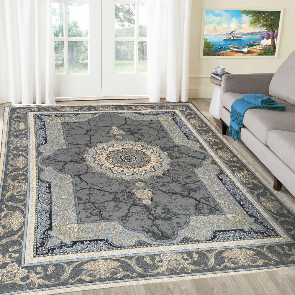 فرش ماشینی کاشان 700 شانه کد 7052 زمینه نقره ای