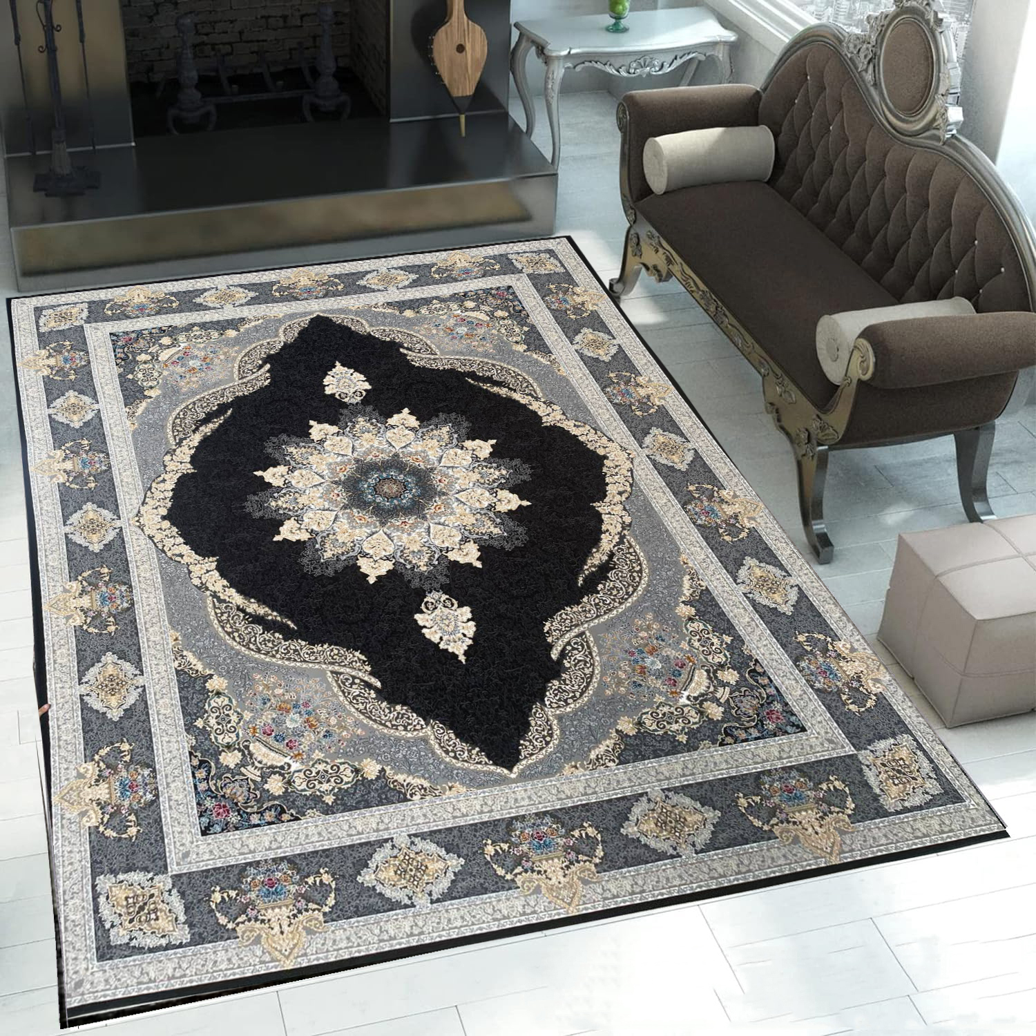 فرش ماشینی کاشان 700 شانه کد 7003 زمینه ذغالی
