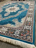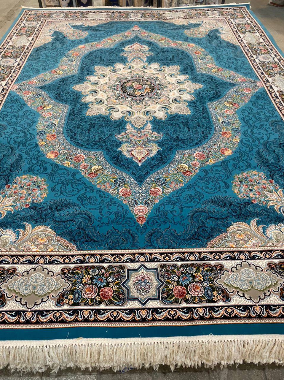 فرش ماشینی کاشان 700 شانه نقشه کارینا زمینه آبی