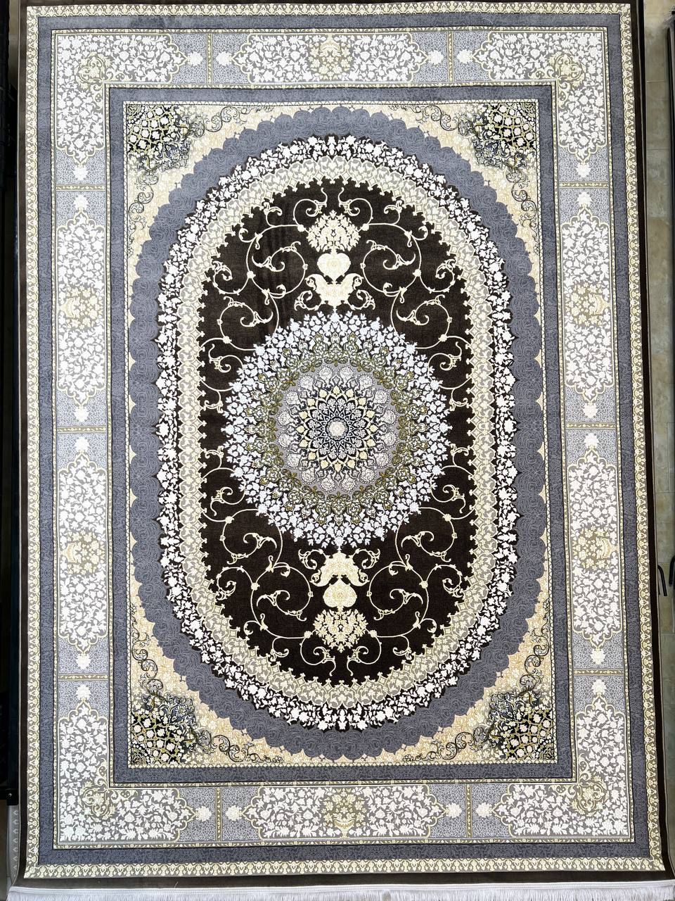 فرش ماشینی کاشان 700 شانه برجسته دیزاین 1200 نقشه صدرا زمینه قهوه ای