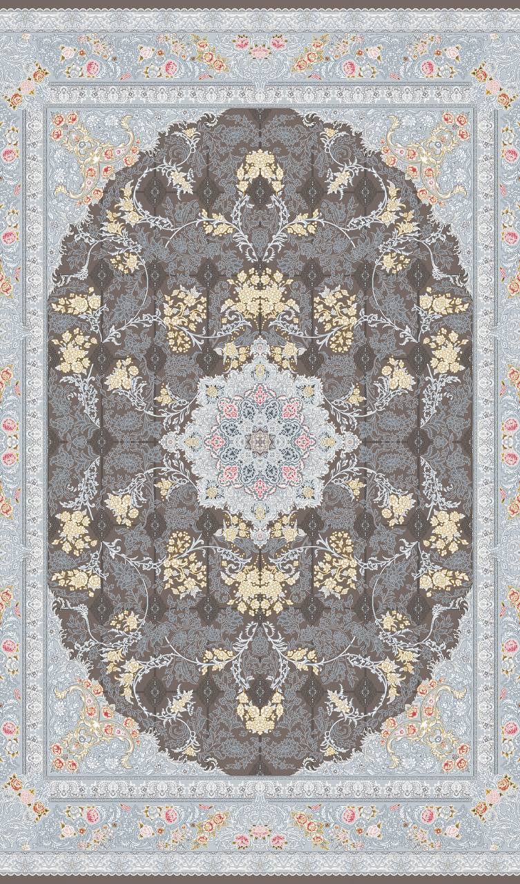 فرش ماشینی کاشان 700 شانه برجسته دیزاین 1200 نقشه ترنم زمینه قهوه ای