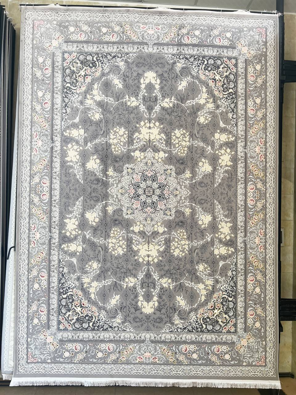 فرش ماشینی کاشان 700 شانه برجسته دیزاین 1200 نقشه ترنم زمینه سیلور