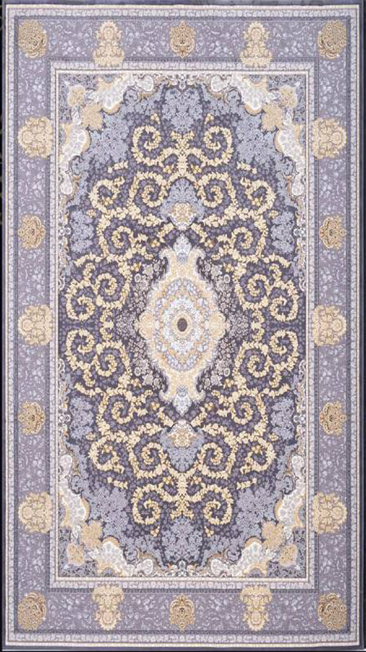 فرش ماشینی کاشان 700 شانه برجسته دیزاین 1200 نقشه پرنسس زمینه دودی