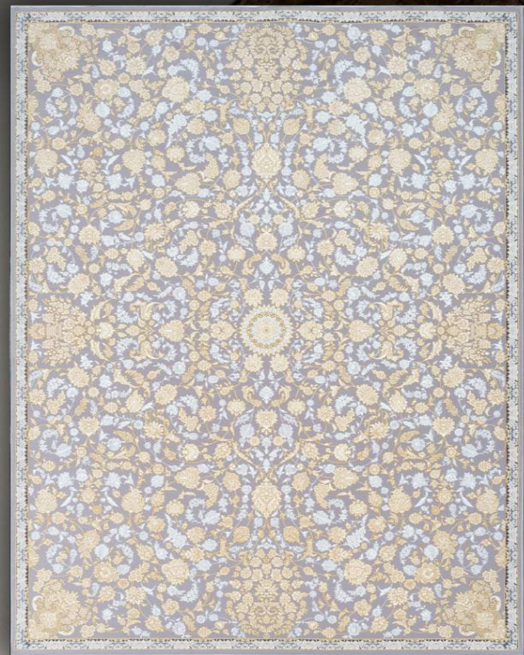 فرش ماشینی کاشان 700 شانه برجسته دیزاین 1200 نقشه عروس زمینه سیلور