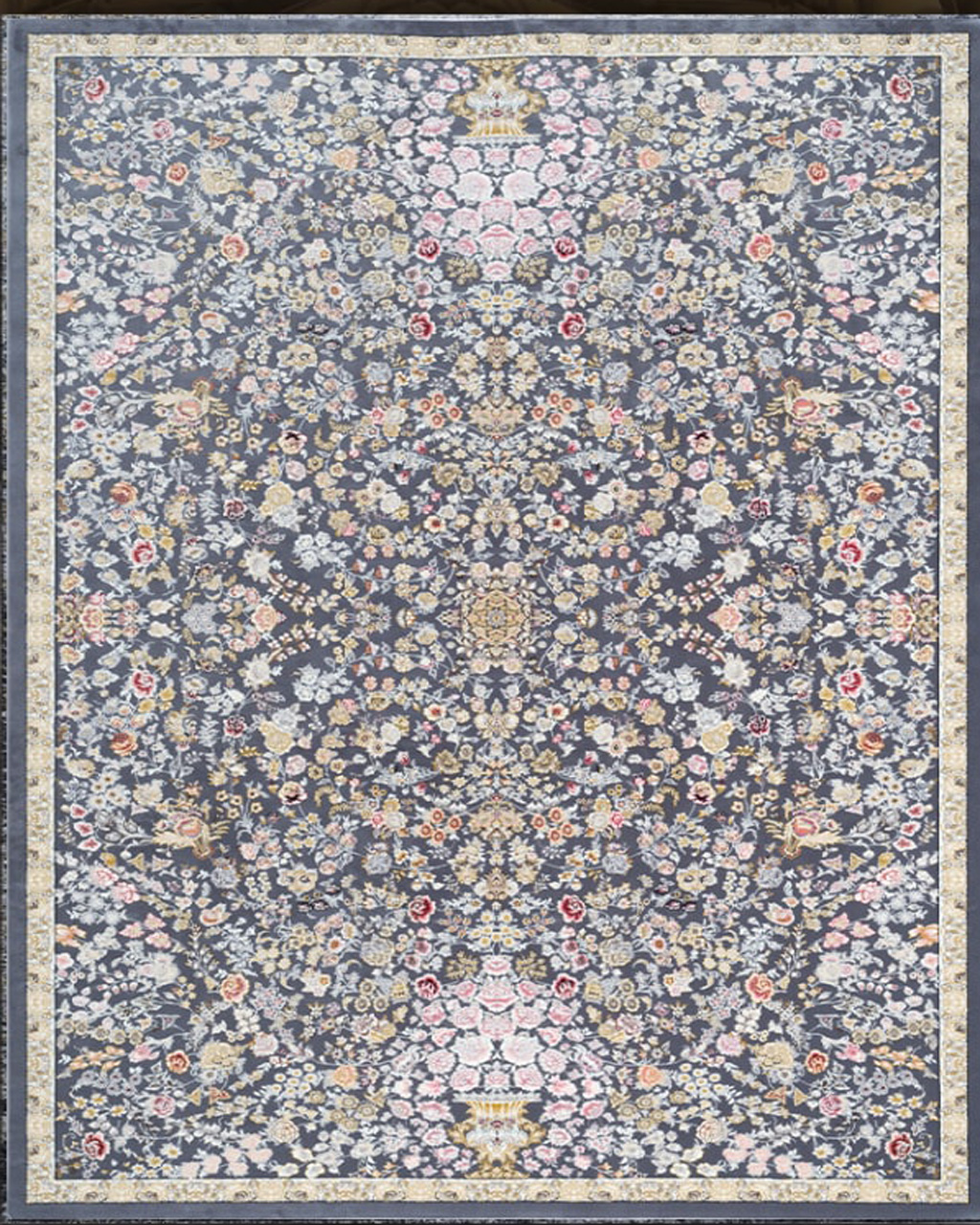 فرش ماشینی کاشان 700 شانه برجسته دیزاین 1200 نقشه پروا زمینه دودی