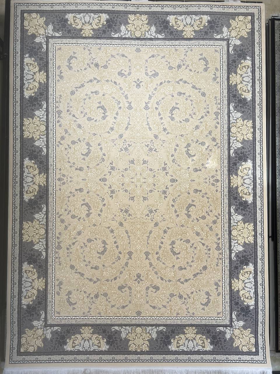 فرش ماشینی کاشان 700 شانه برجسته دیزاین 1200 نقشه آتنا زمینه بژ