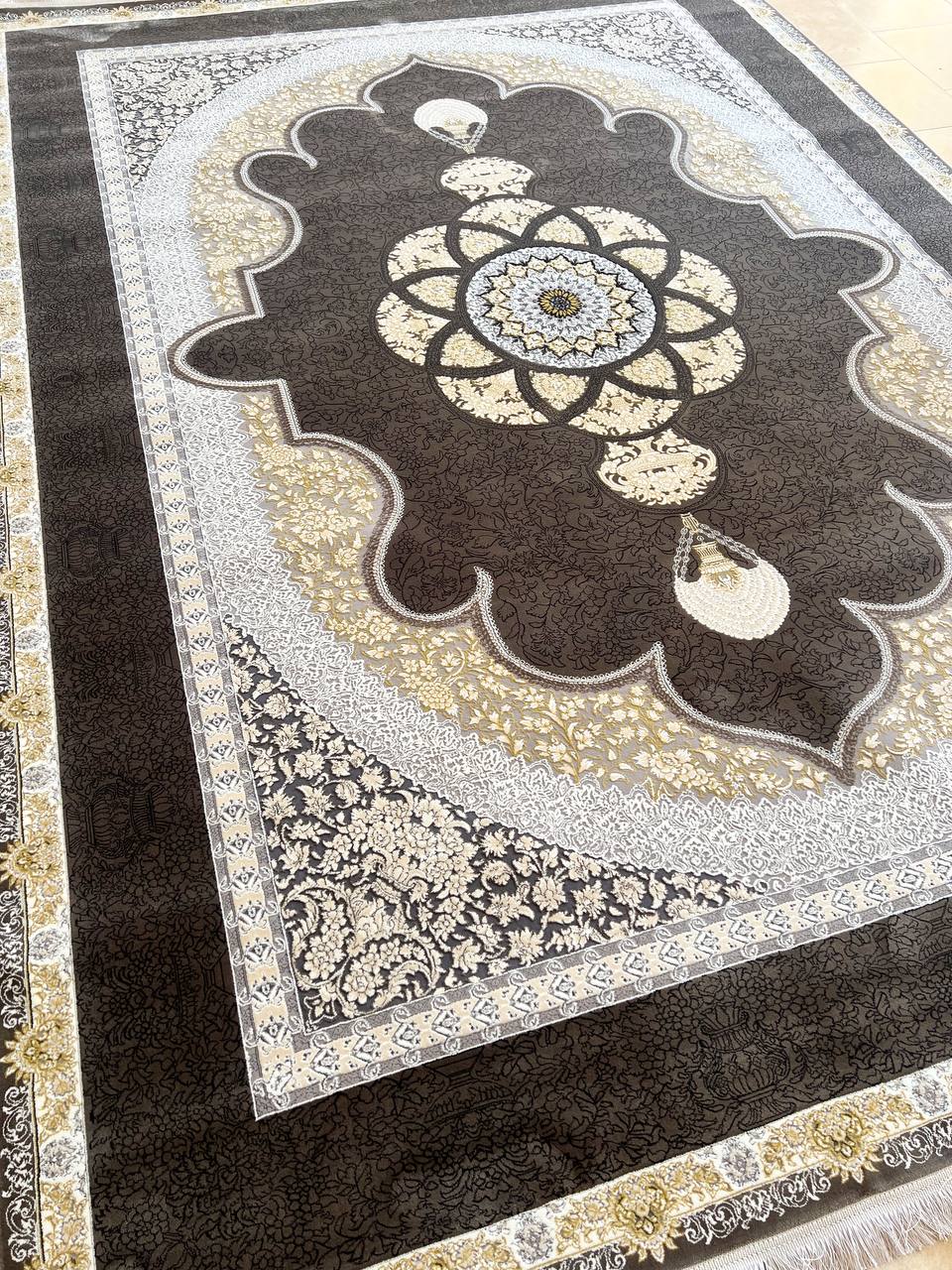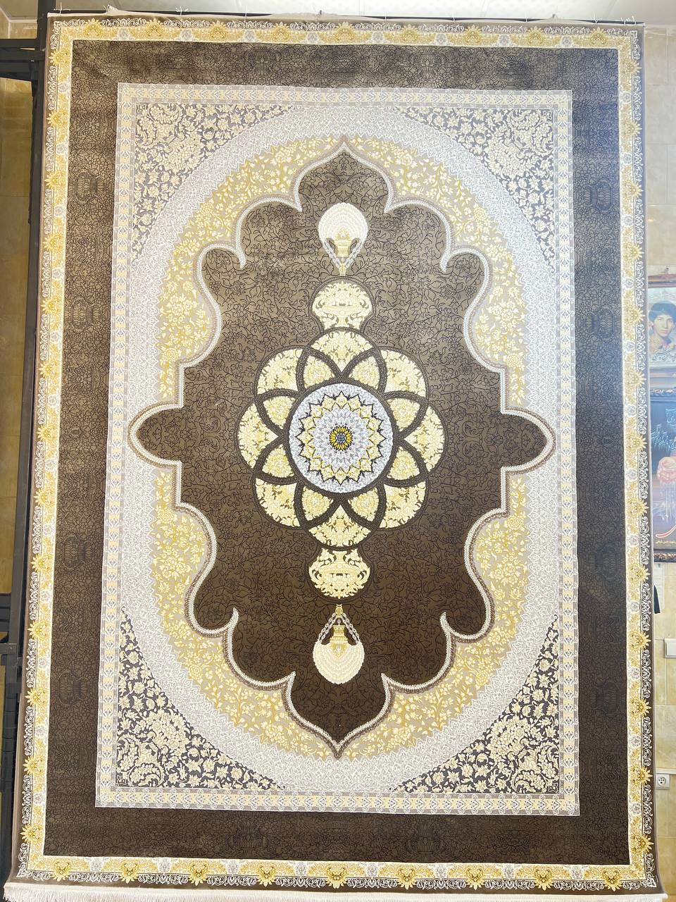 فرش ماشینی کاشان 700 شانه برجسته دیزاین 1200 نقشه سلنا زمینه قهوه ای