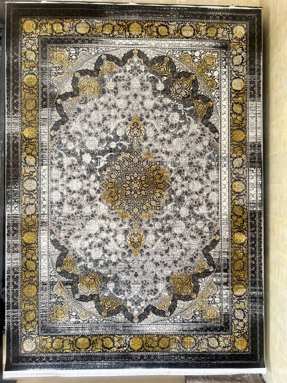 فرش ماشینی کاشان 700 شانه برجسته دیزاین 1200 نقشه رادمان وینتیج کد 1 طلایی