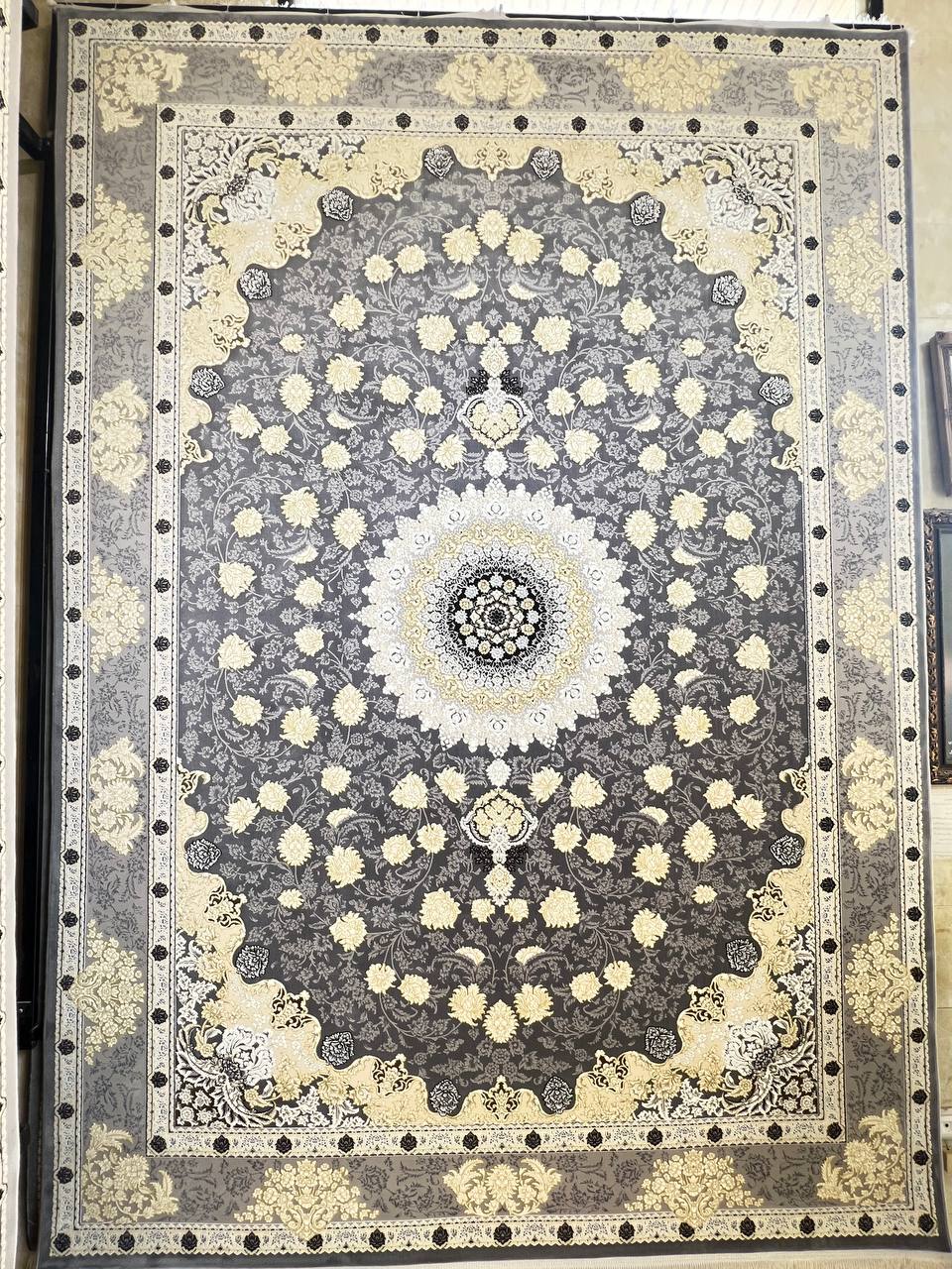 فرش ماشینی کاشان 700 شانه برجسته دیزاین 1200 نقشه پردیس زمینه دودی